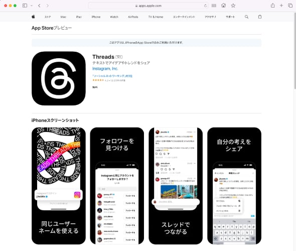 Threadsは、2023年7月に公開され、わずか5日間で1億ユーザーを達成した比較的新しいSNS。Metaによると現在の月間アクティブユーザー数は3億を超えたという。