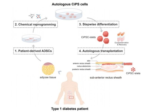 中国の南開大学などに所属する研究者らが発表した論文「Transplantation of chemically induced pluripotent stem-cell-derived islets under abdominal anterior rectus sheath in a type 1 diabetes patient」は、1型糖尿病の新たな治療法として、患者自身の細胞から作製した膵臓の細胞を移植する臨床研究の成果を示した研究報告である。