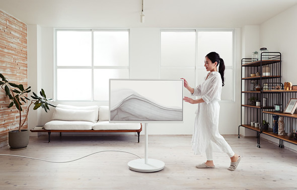 プライベート・ビエラはバッテリーで駆動できる小型ポータブル商品だったが、それをコンセント駆動で大型化したのが「レイアウトフリーテレビ」だ。脚部がついてどこにでも転がしていける。テレビを見るだけにとどまらず、リモート会議やPC仕事にも移動可能な大型ディスプレイとして使える。テレビの置き場所は固定されているもの、という考え方を撤廃した製品だった。