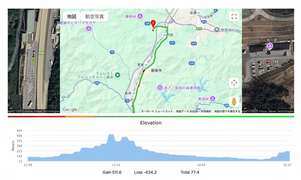 墓参りなどを終え、道中城郭跡を巡りながら横浜に帰ります。気温13度、好天の下、午前10時頃、岡山市の実家を出発し、一路、兵庫県朝来市の竹田城跡を目指します。バッテリー残量は67%です。Teslaナビのトリップアドバイザーによると、距離152kmでバッテリー残33%で到着とあります。計算上の電費は、168Wh/km(5.96km/kWh)です。電費優等生のModel 3にしてはよくありません。