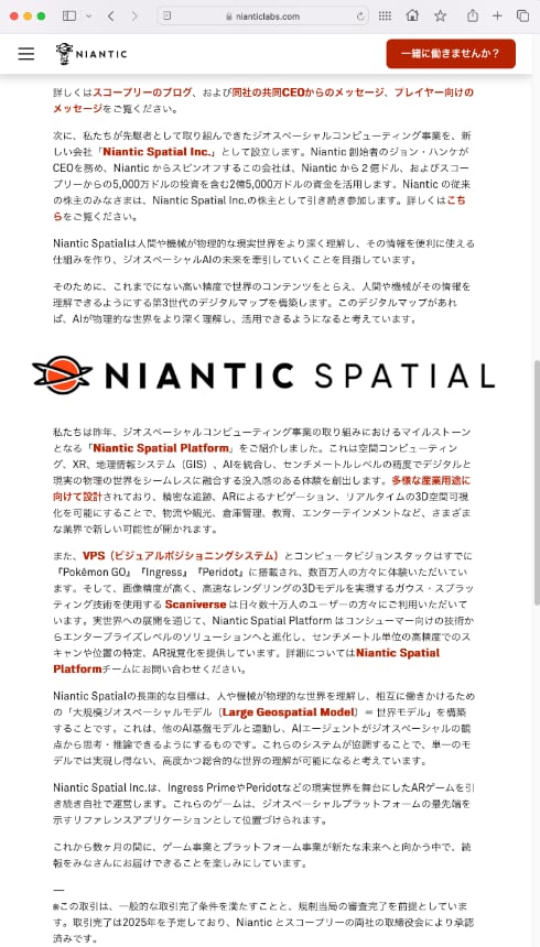一方、NianticはARと位置情報技術を活用するジオスペーシャル(地理空間)コンピューティング事業をスピンオフし、新会社「Niantic Spatial Inc.」を設立することも明らかにした。Nianticの創設者であるジョン・ハンケ氏がCEOに就任する。