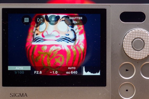 さらに、シャッターボタンを半押しするとロータリーダイヤルが自動的に露出補正になる。半押しした状態でダイヤルを回せば露出補正ができるのだ。これは慣れると快適。