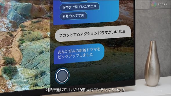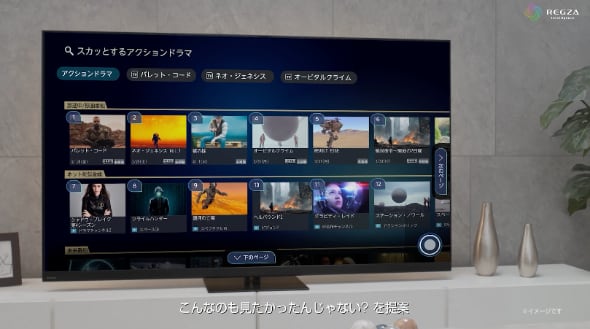 TVS REGZAは、Gemini連携により「コンテンツ検索において、従来は困難だった抽象的な言葉に対しても発話内容の文脈を理解し、適切なコンテンツを提案する」としている。