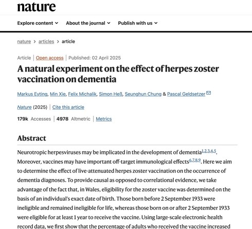 Source and Image Credits: Eyting, M., Xie, M., Michalik, F. et al. A natural experiment on the effect of herpes zoster vaccination on dementia. Nature(2025). https://doi.org/10.1038/s41586-025-08800-x
