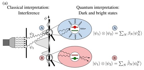 従来の解釈では、破壊的干渉が起きる場所には光がないと考えられてきた。しかし、この研究によれば、そのような場所にも実は光子は存在しており、ただそれらの光子が「暗い状態」という特別な集団的状態にあるため、検出器と相互作用できず、見えないだけという。同様に、建設的干渉が起きる場所では、光子が「明るい状態」にあるため、通常よりも強く検出器と相互作用し、より明るく見えるという。