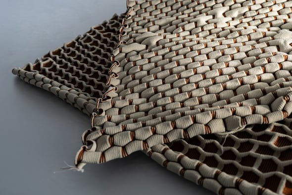 ZOZO NEXT(千葉県千葉市)とPoiesis Labs(京都府京都市)は6月13日、テキスタイルに圧電性フィルムを埋め込んだ「ニットファブリックスピーカー」を2025年日本国際博覧会(大阪・関西万博)に出展すると発表した。