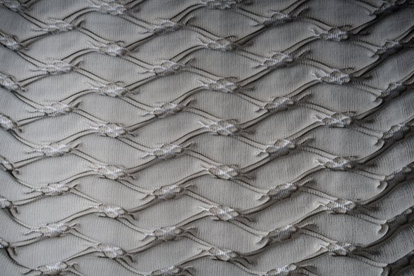 島精機製作所(和歌山県和歌山市)の先端編み技術を用い、様々な和柄をあしらった立体的なニット生地を製作。透明電極を使用する圧電性フィルムを組み込んだ。