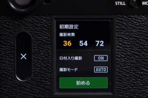フィルムカメラモードを実行すると、フィルムカメラ時と同様、光学ファインダーを覗きながらの撮影しかできなくなり、最初に指定した枚数(35と54と72がある)を撮るまで撮った写真を見られないのだ。