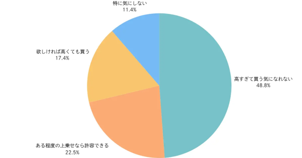 転売価格でSwitch 2を購入することに対する印象も聞いた結果、「高すぎて買う気になれない」が48.8%で半数近くを占めた。一方、「ある程度の上乗せなら許容できる」が22.5%、「欲しければ高くても買う」が17.4%となり、約4割の人が転売価格での購入意向を示した。