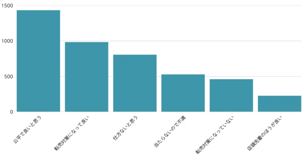 抽選販売という販売方式について、複数回答形式でどう思うか聞いたところ、最も多かったのは「公平で良いと思う」(1435人)で、約半数に上った。次いで「転売対策になって良い」(984人)、「仕方ないと思う」(807人)が続いた。「当たらないので不満」と回答した人も5人に1人(529人)を占めた。