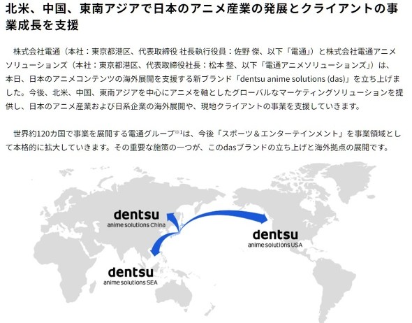 しかし少子高齢化と、配信サービスの台頭によって、子ども向けテレビアニメの国内での黄金時代は終わりを迎えた。もちろんアジア圏ではかつての日本のベビーブームのような状態にある国も幾つかあるが、国や地域毎にビジネスドメインが区分されている放送やそこに付随する広告ビジネスにおいて、国内の広告代理店が直接参入することは難しい。電通、博報堂、ADKといった広告代理店大手は、この分野での事業の在り方の転換を模索してきたというのがここ10年ほどの動きだった。