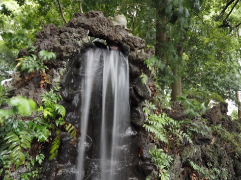 意外に使いでがあるのが「ライブND」。NDフィルターをつけたときのようにシャッタースピードを落として撮れるもので、例えば昼間でもシャッタースピード1秒で撮れたりする。しかも手持ちで。ちょっとした人工的な小さな滝をライブND16を使ったスローシャッターで撮ってみた。