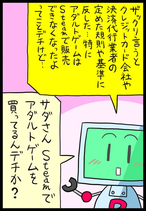 世界中で物議のクレカ表現規制にマンガ家も懸念、Steamの一件で急浮上した団体とは?サダタローのゆるっとマンガ劇場(3/7 ページ)