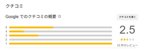 28日午後4時時点で、Google マップ上のジャングリア沖縄の評価は2.5点、レビューの数は13件となっている。