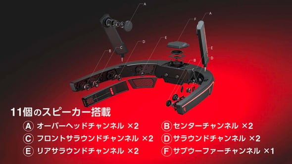 一方、この形状だと不安になることがありますよね。そうです、COLO GCSには、サラウンドにおいて大事なフロントスピーカーがありません。もちろん、視界の邪魔になるので、横からにょきにょきと出すわけにもいかない。その問題をCOLO GCSは、反射を使ってうまく対応しています。