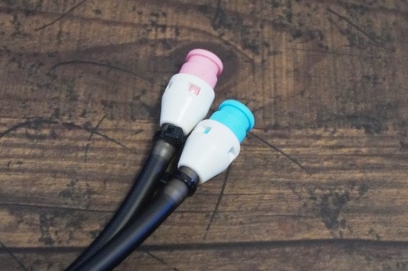 ここから水道水が通るパイプが伸びている。先端は着脱可能なジョイントになっており、コネクタ内に弁があるため、中の水が流れてくるようなことはない。