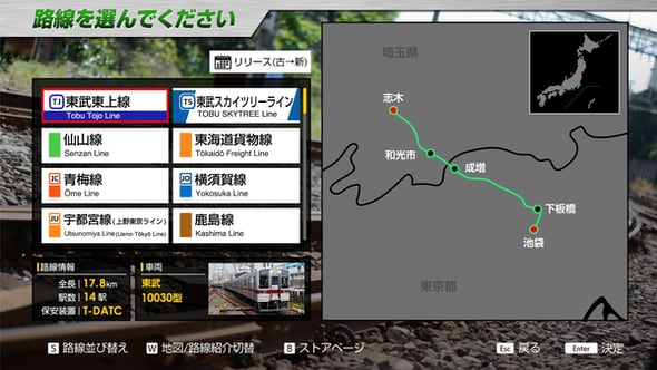 東武スカイツリーライン(北春日部〜北千住間 上り29.7km)および東武東上線(志木〜池袋間 上り17.8km)を8月26日から配信する。価格は3980円(別途、JR東日本トレインシミュレータ基本パックが必要)。