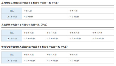また受験日時を自由に選べるようになるため、科目名も変更に。「午前試験」は「科目A試験」に、「午前I試験」と「午前II試験」はそれぞれ「科目A-1試験」と「科目A-2試験」に名称が変わる。従来の免除制度については変わりなく、それぞれ名称を変えた科目A-1試験と科目A-2試験で有効となる。