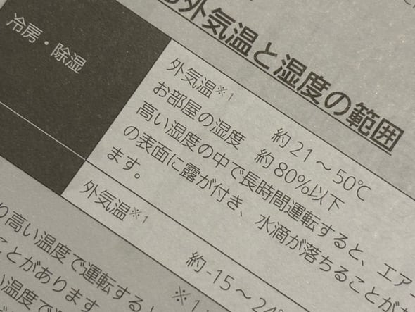 43℃という数字は、日本産業規格(JIS)に定められている「冷房過負荷試験条件」にある(JISB8615)。メーカーは「室外機側の吸い込み温度を43℃として1時間運転し、異常停止しないかなどの検査をする」(ダイキン)という。事実上、気温43℃までの動作を担保しているといっていい。