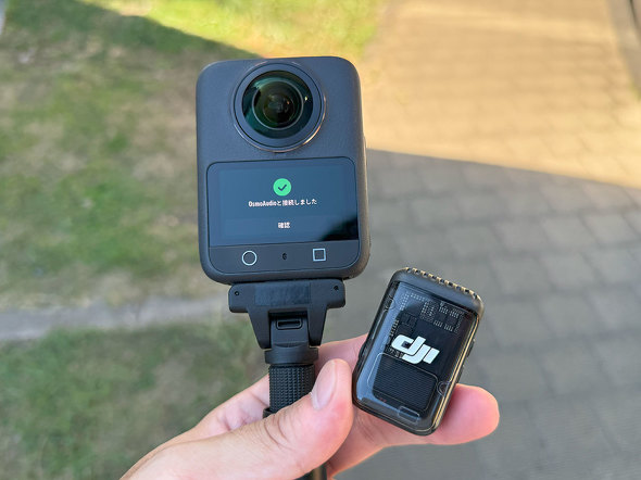 他にも「DJIエコシステム」ならではの機能もある。例えば、純正のワイヤレスマイク「DJI Mic 2」なら、レシーバー不要で2台までOsmo 360に直接接続できる。360度カメラは自撮り棒を伸ばして撮ることが多いので、内蔵マイクが遠ざかってしまいがち。Vlog用途など、喋りながら撮影したい時にワイヤレスマイクが手軽に使えるのはありがたい。