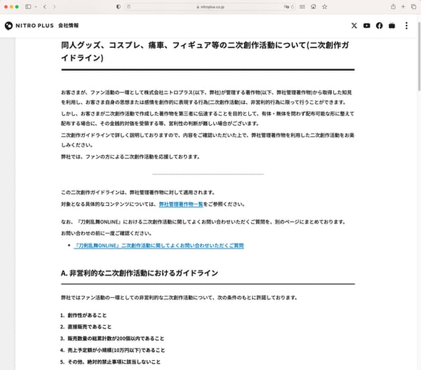 ニトロプラス、2次創作ガイドラインを改定 「200個、売り上げ10万円以内」「書店委託禁止」
