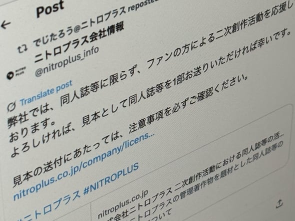 物議かもしたニトロプラスの2次創作ガイドライン改定へ 「意図と異なる表現になっていた」と社長