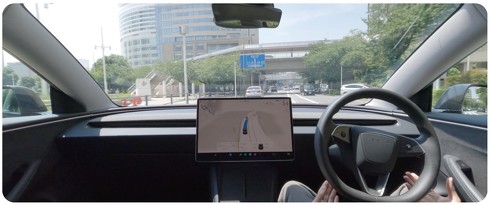 テスト車両は、販売中の車両と同様の最新ハードウェア(AI 4)と、カメラベースの周辺認識センサー「Tesla Vision」を搭載した「モデル3」。公式X(@teslajapan)では実際に自動車が自動走行している動画を公開しており、ハンドルに触れずに運転している様子を確認できる。