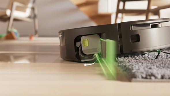 レーザー光の反射を元に距離や対処物の形を計測できるLiDARを搭載したロボット掃除機。間取りや家具を立体的に表現する3Dマップを作成し、効率良く掃除する。カメラとAIを活用して床の上にあるコードやペットの排泄物などを認識して回避する。