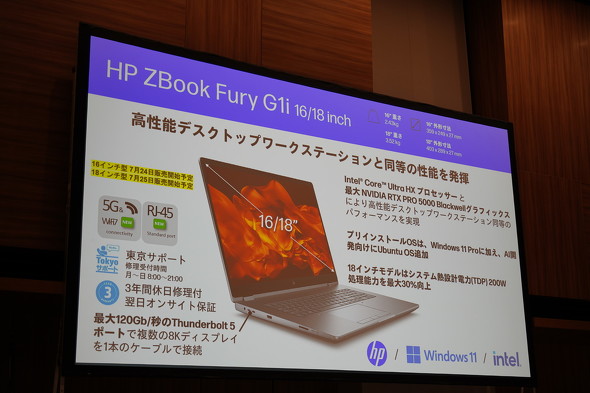 モバイルワークステーション「HP ZBook Fury G1i」は「持ち運べるデスクトップ」。Intel Core Ultra UXプロセッサとNVIDIA RTX PRO 5000 Blackwellを搭載。OSもWindows 11 Proの他にUbuntuも選択可