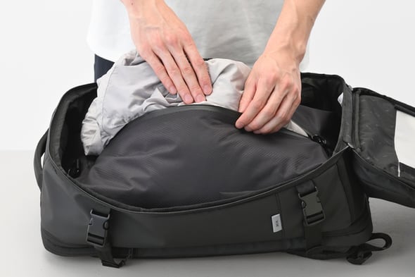 「スーツケースを使わずに旅行したいこと、結構ありますよね。でも、リュックに入れるような圧縮袋って、下着くらいの小物しか入れないと思うんです。ダウンジャケットみたいな大きなものを圧縮しようとすると、結局は袋ごと大きくなってしまう。そうなると、『スーツケースじゃないと無理か』ってなるんですけど、そこをリュックで行けたらいいなと。そんなバッグがあったら、すごく便利だと思ったんです」と白石さん。