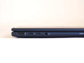 インタフェースも充実している。Thunderbolt 4、USB Power Delivery、DisplayPort 2.1対応のUSB Type-Cポートが2基、USB Power DeliveryとDisplayPort 1.4対応のUSB Type-Cポートが1基ある。USB Type-AとHDMI端子も1基ずつ備えている。無線LANはWi-Fi 7に対応しており、理論上の最大通信速度はWi-Fi 6Eの約4.8倍となる46Gbpsに向上。Bluetooth 5.4対応で、周辺機器と接続中でも電力消費は低い。