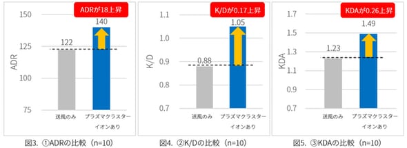 研究にはプロeスポーツチーム「QT DIG∞(キューティー ディグ)」が協力。プラズマクラスターの「照射あり」と「照射なし(送風のみ)」の選手で対戦した。