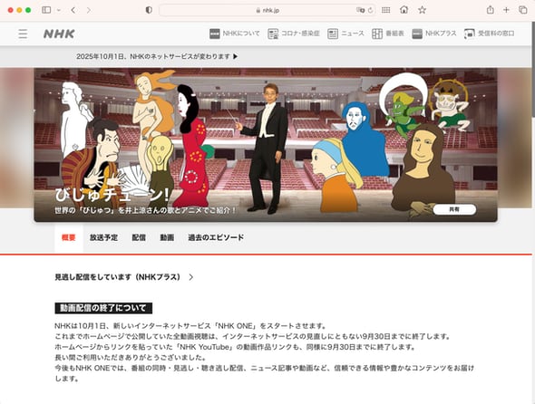 井上さんは「NHK内部の人間ではないため詳細は知りえず」としながらも、10月1日から「NHK ONE」をスタートさせるにあたり、オンラインでの動画公開を見直すためと聞いたという。なお、NHKの番組ページでも同様の案内をしている。
