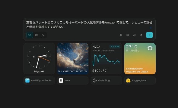 新規タブを開くと、PerplexityのAIアシスタントが待ち構えている。ここに知りたいことを入力すると、AIアシスタントがあなたに代わって関連サイトを巡回し、情報をまとめた状態で提示してくれる。