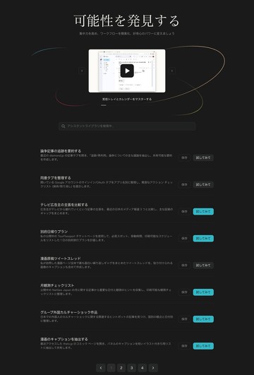 「アシスタントライブラリ」も可能性のある機能だ。これはあるテーマに沿っての調査を自動的に行ってくれる、ある種のプリセットである。ただ現状、うまく動くものと動かないものがあるのは、まだまだ発展途上の機能だからだろう。