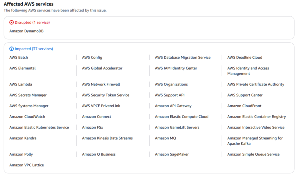 影響が出ているサービスは以下の通り。米AWSによれば現在復旧中で、午後6時(同)までに最新の情報を告知するとしている。