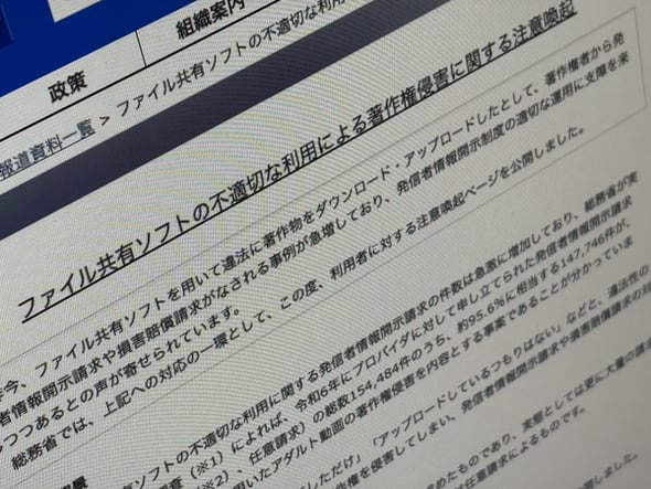 同様の注意喚起は、国民生活センターも7月に行っている。同センターは「ファイル共有ソフトを使わないことが一番の対策」とし、プロバイダから届いた発信者情報開示の照会については「自分に心当たりがなくても、家族など端末(IPアドレス)を共用している人が使っている可能性もある」ため放置しないようにとアドバイスしている。