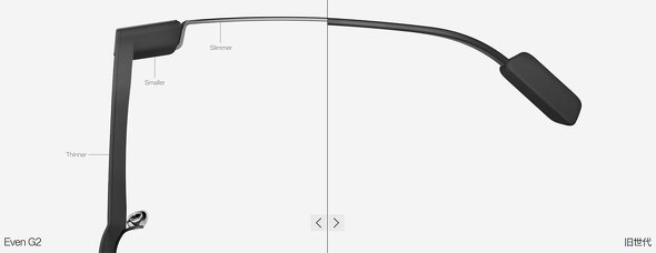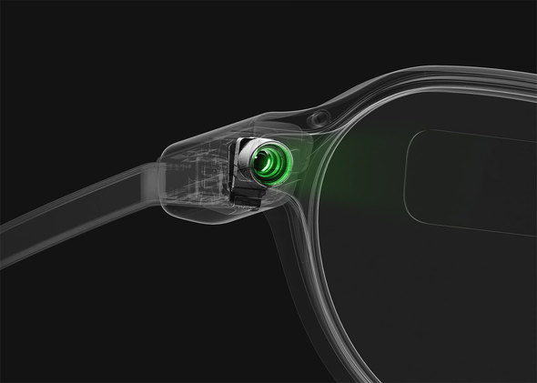 Even G2は、MicroLEDプロジェクターをメガネのレンズ部分に照射して表示する「Holistic Adaptive Optics」(HAO)を採用する。第2世代となり、表示品質が向上したほか、表示領域も75%拡大したという。後述の機能のためのマイクは搭載されているが、スマートグラスに採用されがちな、スピーカーやカメラといったデバイスはなく、機能をシンプルにすることでテンプルも薄く仕上げられている。