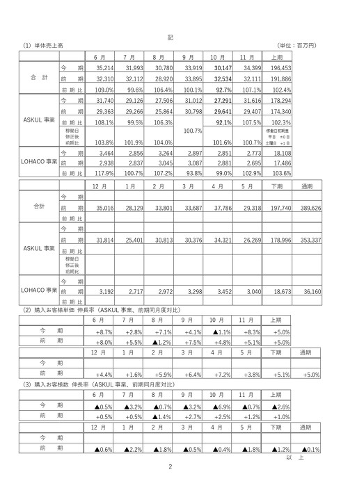 主力分野のASKUL事業の売上高は17億円(同5.4%)、LOHACO事業の売上高は300万円(同0.1%)で、どちらも大きく数字を落とした。