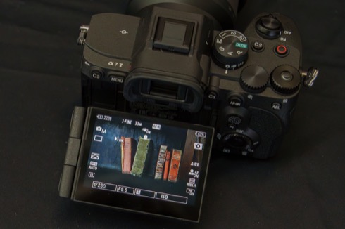 一つは背面モニター。ちょっと大きく高精細になった。さらにα7 IVはチルト式だったが、α7 Vはフラッグシップ機のα1 IIと同じチルト+バリアングルのマルチアングル式になったのだ。ちょっと厚みを増したと感じるのはモニター部の差だ。