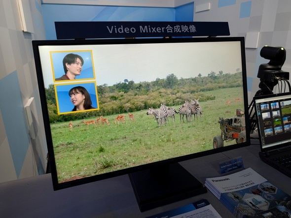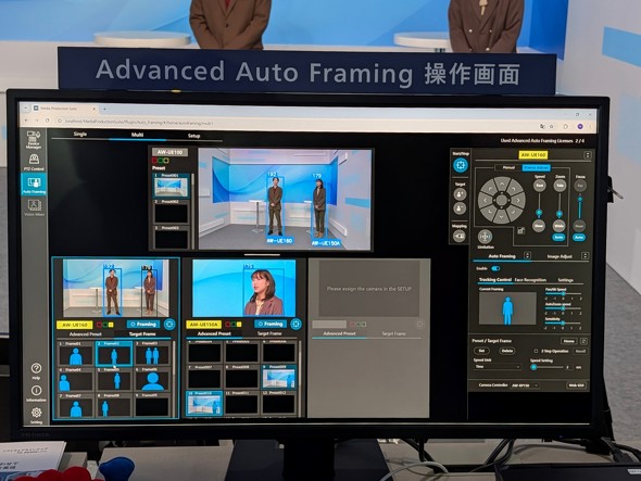 以前から展示されているマルチカメラソリューション、「マルチカメラオーケストレーション」は、また今年も進化している。これは有人カメラ1台に対して、サブカメラであるPTZカメラが自動的に振られた役割で動作するというものだ。例えばメインカメラが1人にズームインすれば、他のカメラはもう1人の人を撮ったり、全体を映したりという動きを行う。