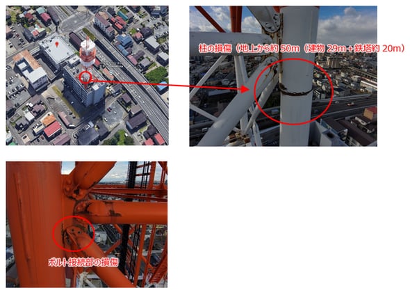 NTT青森八戸ビルの鉄塔は12月8日に青森県東方沖で発生した地震により、4本の支柱のうち1本が損傷を受けた。当初は復旧工事に3週間から1カ月かかると見込まれていたが、NTT東日本は15日に「年内に工事が完了するめどが立った」と発表している。