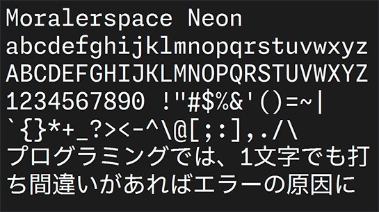 Moralerspaceは、米GitHubがコーディングのために作成した欧文フォント「Monaspace」と、米IBMが作成した日本語フォント「IBM Plex Sans JP」、罫線素片などの一部半角記号はプログラミング向け英文フォント「Hack」などを合成したフォントです。