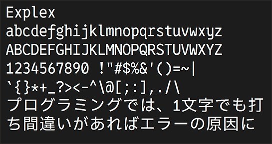 Explexは、コードの読みやすさに焦点を当てた欧文フォント「0xProto」とIBMが作成した日本語フォント「IBM Plex Sans JP」を合成したフォントです。全角スペースの可視化なども行われています。