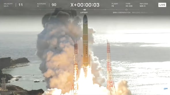 JAXAは12月22日、「みちびき5号機」を載せたH3ロケット8号機を種子島宇宙センターから打ち上げた。JAXAの公式ライブ配信では一時およそ7万5000人がその様子を見守っていたが、衛星を分離する前にトラブルが発生。状況を確認中だ(午前11時30分時点)。