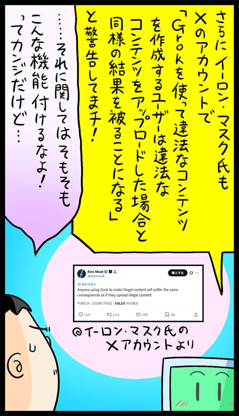 写真が勝手に性的に加工される……Xの「Grok」巡る騒動にSNSをあまりしないマンガ家も抱いた素朴な疑問 「これ、予想できたよね?」サダタローのゆるっとマンガ劇場(6/7 ページ)