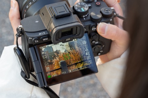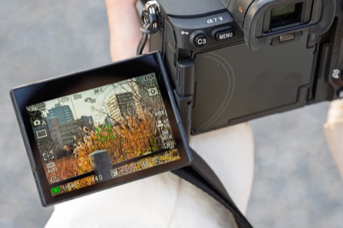 大きく変わったのは背面モニターの自由度。前モデルは一度横に開いてから回転させるバリアングル式だったが、α7Vはチルトとバリアングルのが融合したマルチアングル式。フラッグシップのα1 IIと同じ方式が採用されたのである。