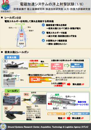 レールガンとは、電気エネルギーを利用して弾丸を発射する将来砲を指す。火薬を使う従来砲に比べ、原理的に弾丸初速の大幅な増大が可能となるのが特徴。電気エネルギーを利用することから弾丸初速や威力、射程を調整しやすい他、弾丸サイズが小さいため探知や迎撃がされにくく、実用化に向けた研究が進んでいる。
