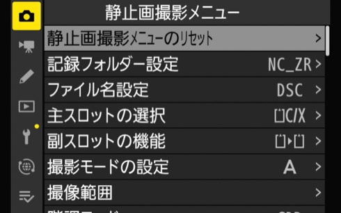ここで撮影設定を行う。メニュー内容はカスタマイズできるので必要なものを厳選するべし。