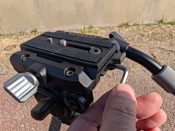 しかしTRIBEX SEは、センターポールを途中で外すことができる。横の六角ネジを2回ほど回すと、ポールが外せるのだ。また六角レンチもヘッド部分に収納できるスペースが設けられているなど、気が利いている。